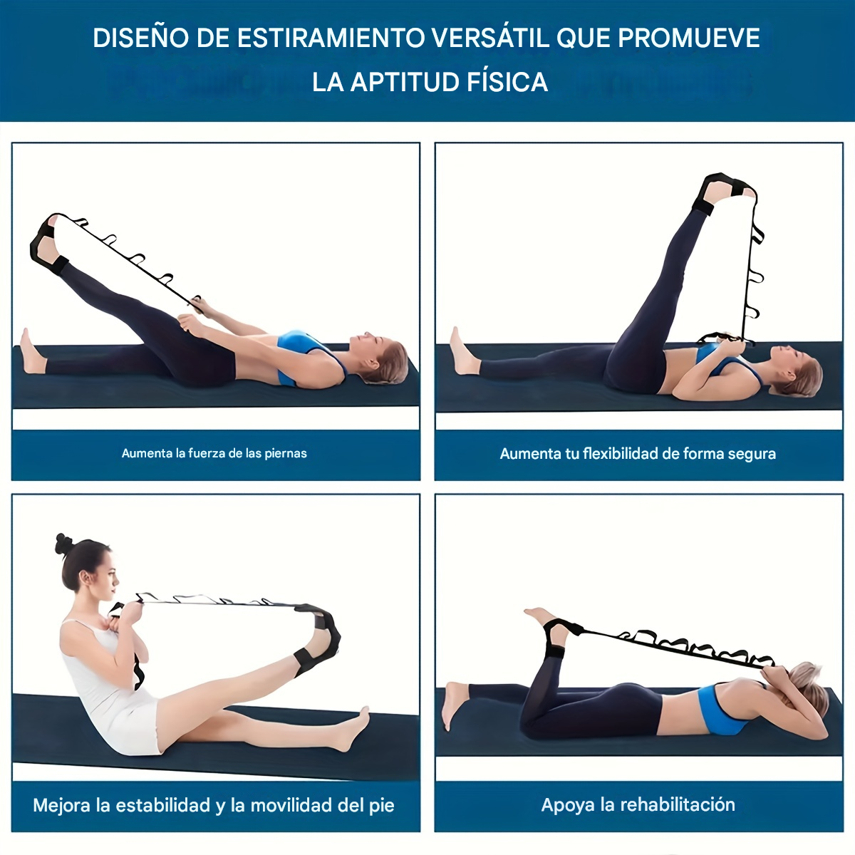 Resistencia Asistida: A diferencia de las bandas de resistencia cerradas, esta herramienta utiliza su longitud y segmentación para actuar como una polea o una palanca, permitiendo al usuario tirar de la extremidad con sus manos o anclar la banda al pie. Esto guía y profundiza el estiramiento más allá de lo que se podría lograr sin asistencia.