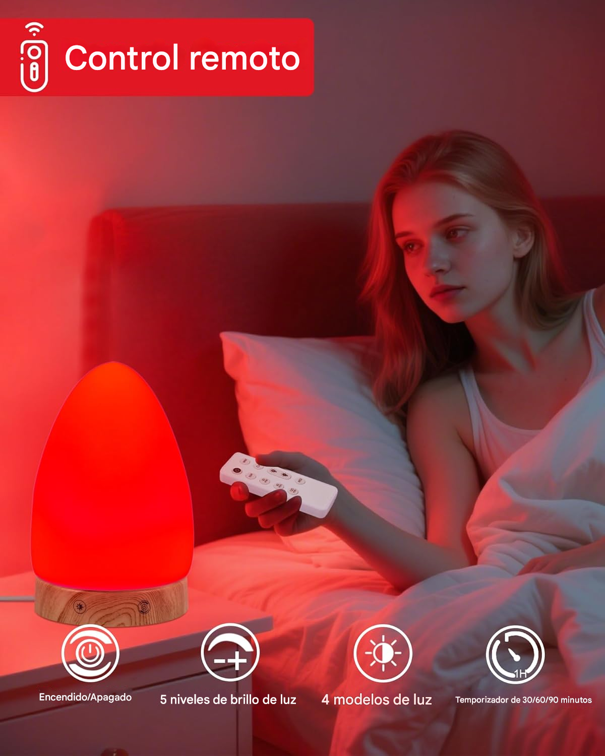 Nota de Seguridad y Uso: Para obtener los mejores resultados, se recomienda encender el modo de luz roja al menos 30 minutos antes de acostarse, sustituyendo cualquier otra fuente de luz artificial en la habitación.