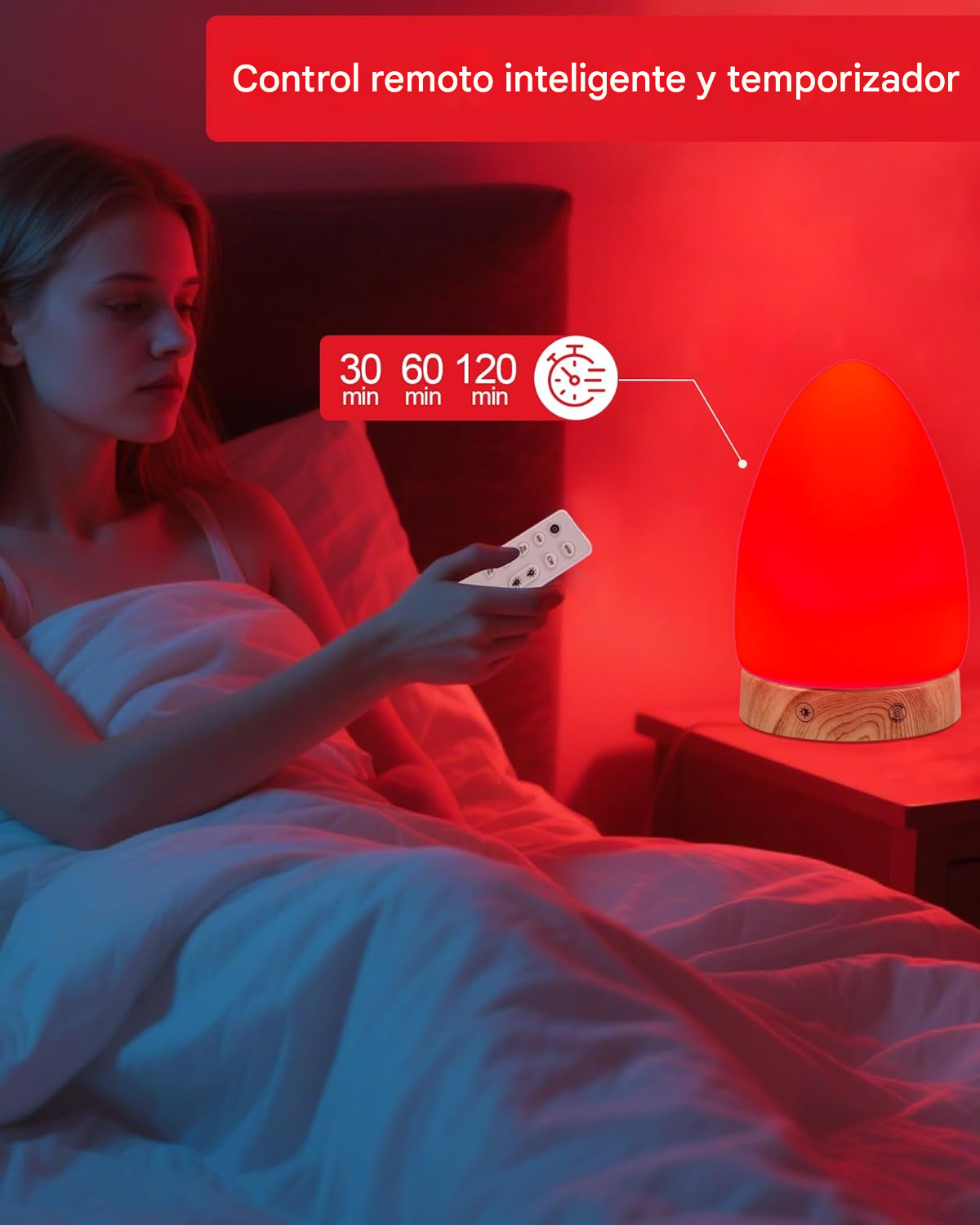 Funcionalidad: Temporizador programable (30/60/120 min) y puerto de carga USB.