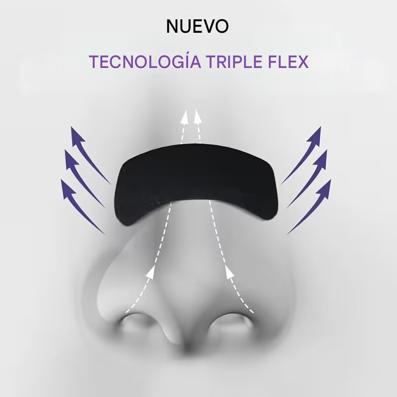 2. Efecto de “Elevación”: Una vez aplicada, la acción de los resortes internos intenta volver a su forma original plana. Esta tensión hace que las aletas nasales se levanten y se separen suavemente hacia afuera.